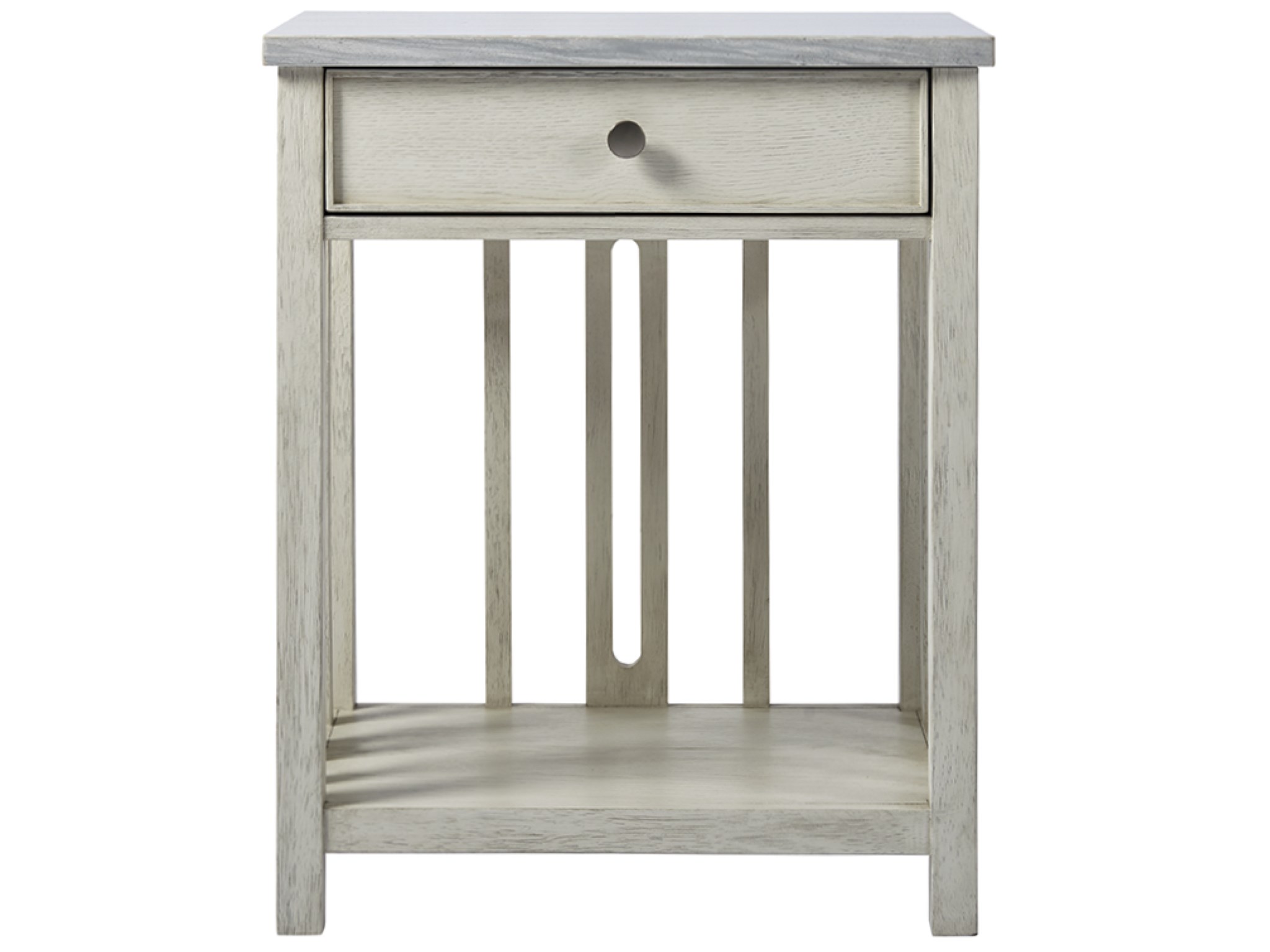 Escape-Coastal Living Home Collection Bedside Table With Stone TopArtfully combining textures and tones, the Escape Bedside Table with Stone Top features one storage drawer, an open-air display shelf, and relaxed linear detailing.Escape-Coastal Living Home CollectionNightstandsBedroom833351