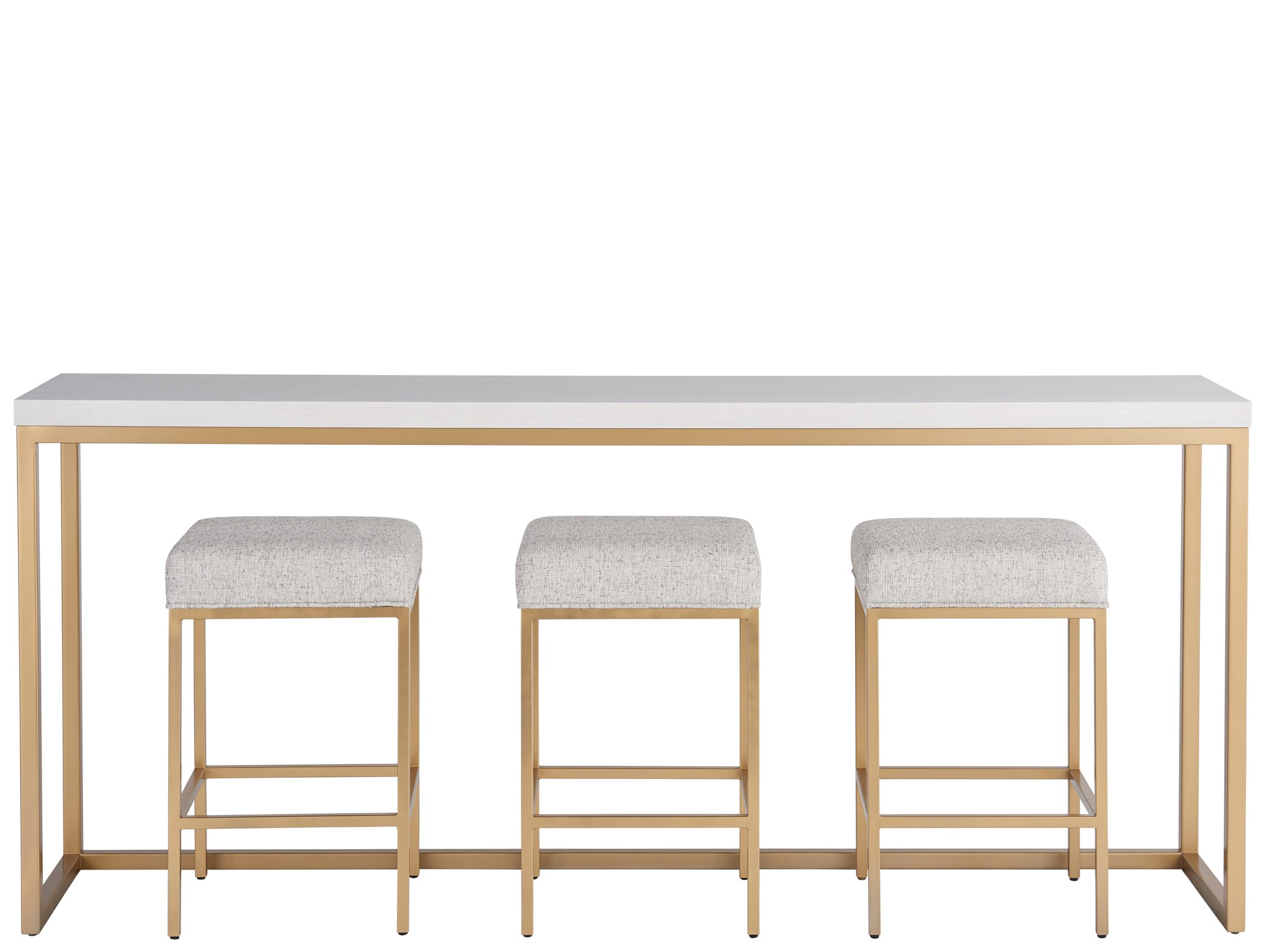 Love. Joy. Bliss.-Miranda Kerr Home Love Joy Bliss Console TableThe Love Joy Bliss Console Table features a smooth tabletop in a chic Alabaster finish, which is accented by a soft gold metal base. Adding to its charm, this console table includes three upholstered accent stools, bringing additional comfort and convenience to spaces.Love. Joy. Bliss.-Miranda Kerr HomeWork From HomeAccent TablesConsolesLiving Room956A803