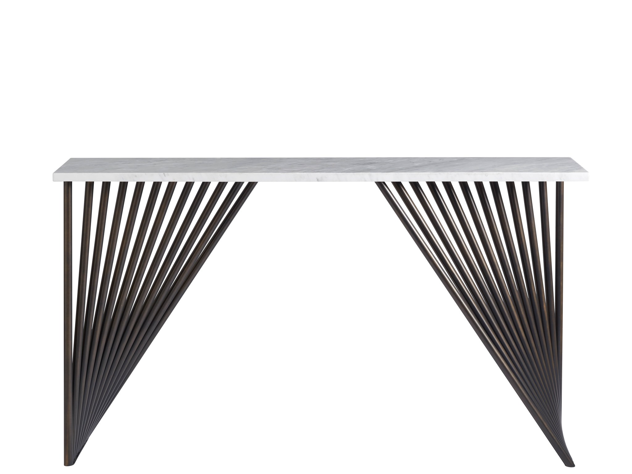 Marcel Console TableOrnament a hallway with the Marcel Console Table, a strongly angled statement piece featuring a smooth stone top set atop a bronze metal finished base.Accent TablesConsolesLiving Room941803