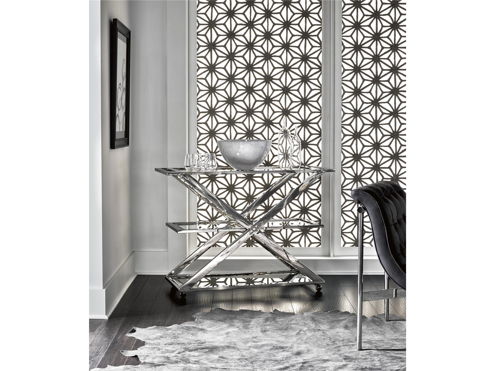 Modern Draper Bar CartPerfectly designed to house all of your favorite party libations, the Draper Bar Cart is inspired by a classic elegance and reimagined with an edgy, geometric twist.ModernBuffets And CabinetsBar StorageDining Room656D860