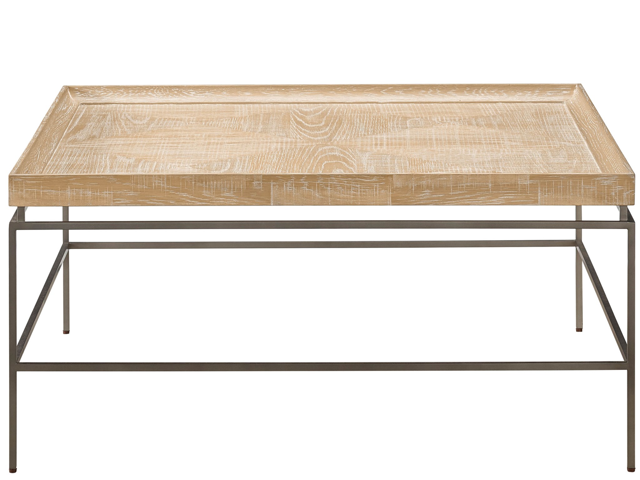 Modern Farmhouse Galen Cocktail TableThe Galen Cocktail Table strikes the perfect balance between modern design and farmhouse flair with its rustic natural oak finish offset by a dark angular metal base.