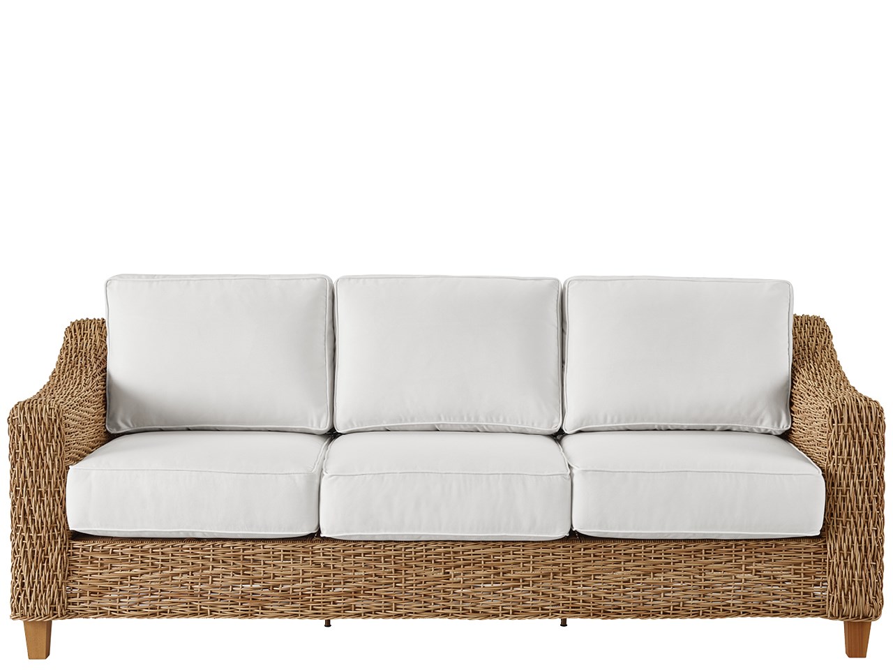 Coastal Living Outdoor Laconia SofaA stunning outdoor statement piece, the Laconia Sofa is defined by an intricately woven wicker silhouette in a light brown hue neatly paired with lush neutral cushions.Coastal Living OutdoorOutdoorSofasOutdoorU012300