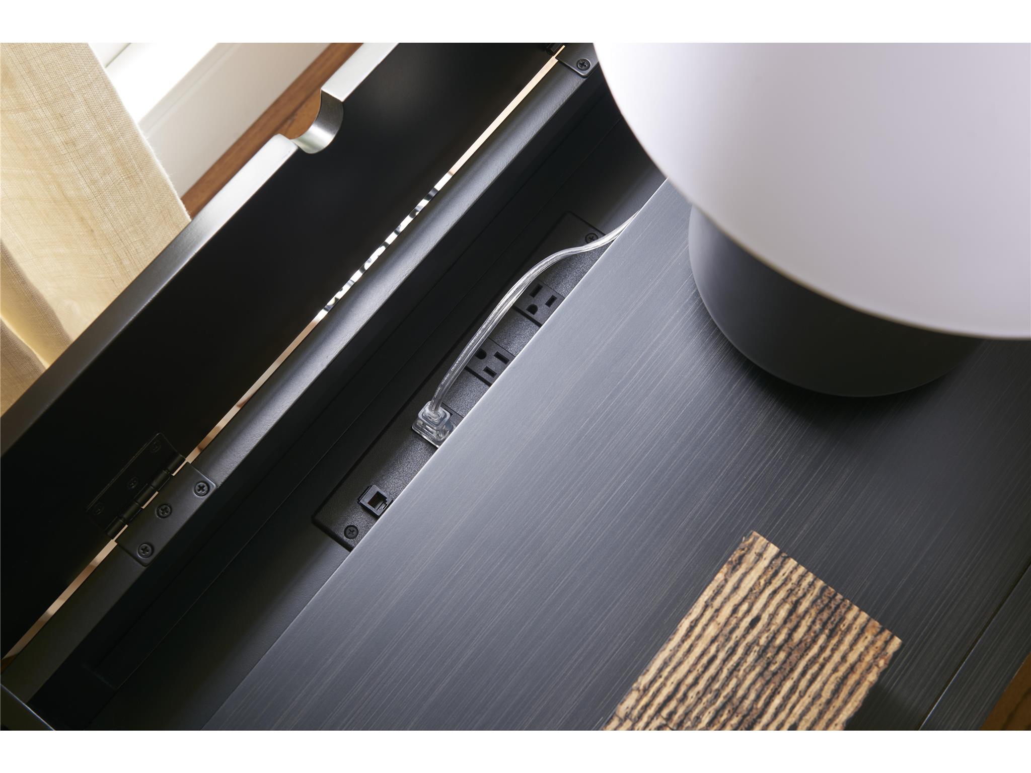 Spencer NightstandThe Spencer Nightstand not only adds interest with its striking two-toned finish, but it also comes outfitted with a conveniently hidden power outlet underneath its top lid.