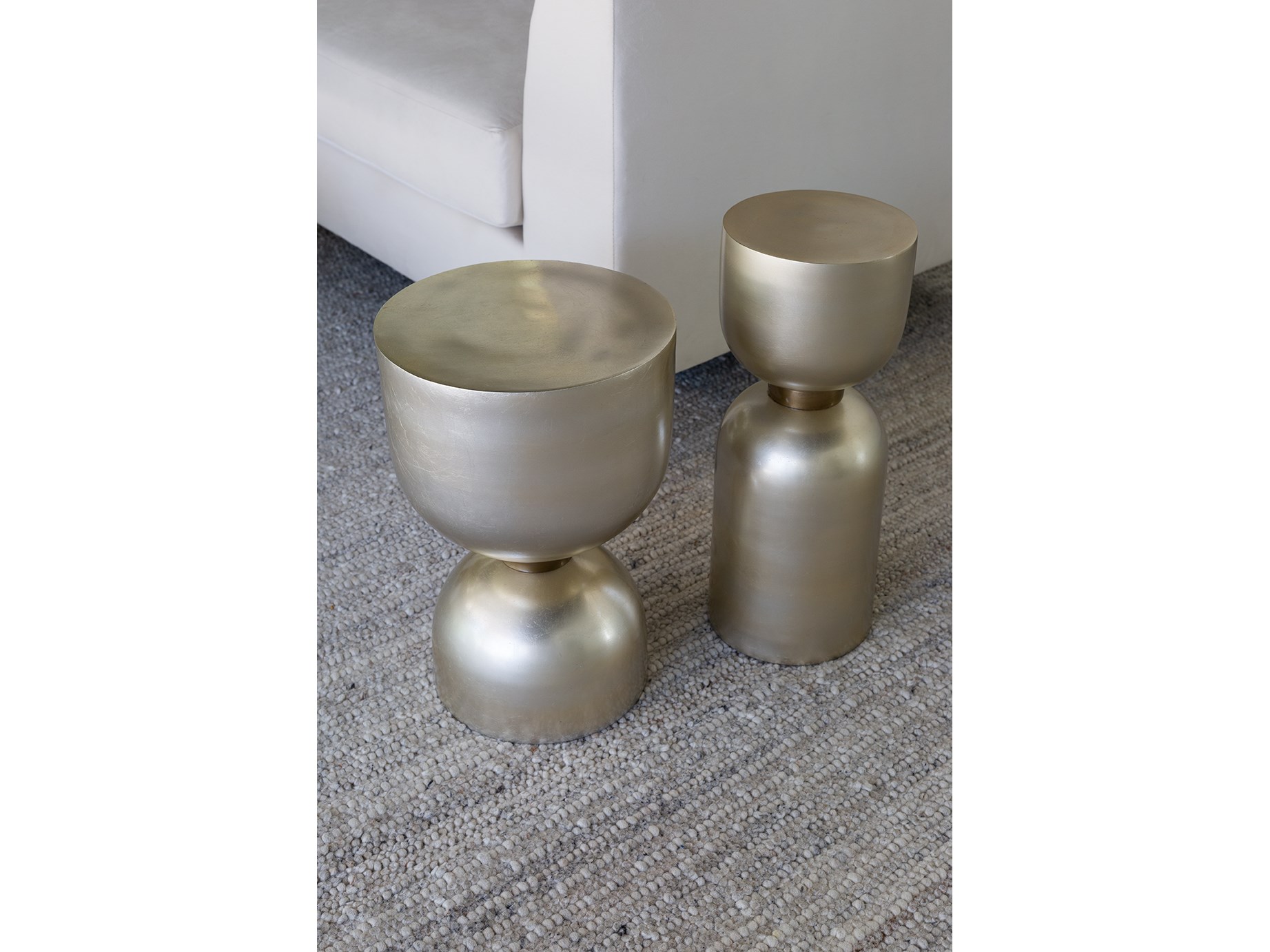 Erinn V X Universal Roca Short Spot TableThe Roca Spot table features an elongated hourglass silhouette, cast in a smooth silver leaf finish with an antique satin brass collar.Erinn V X UniversalAccent TablesLiving RoomU225805