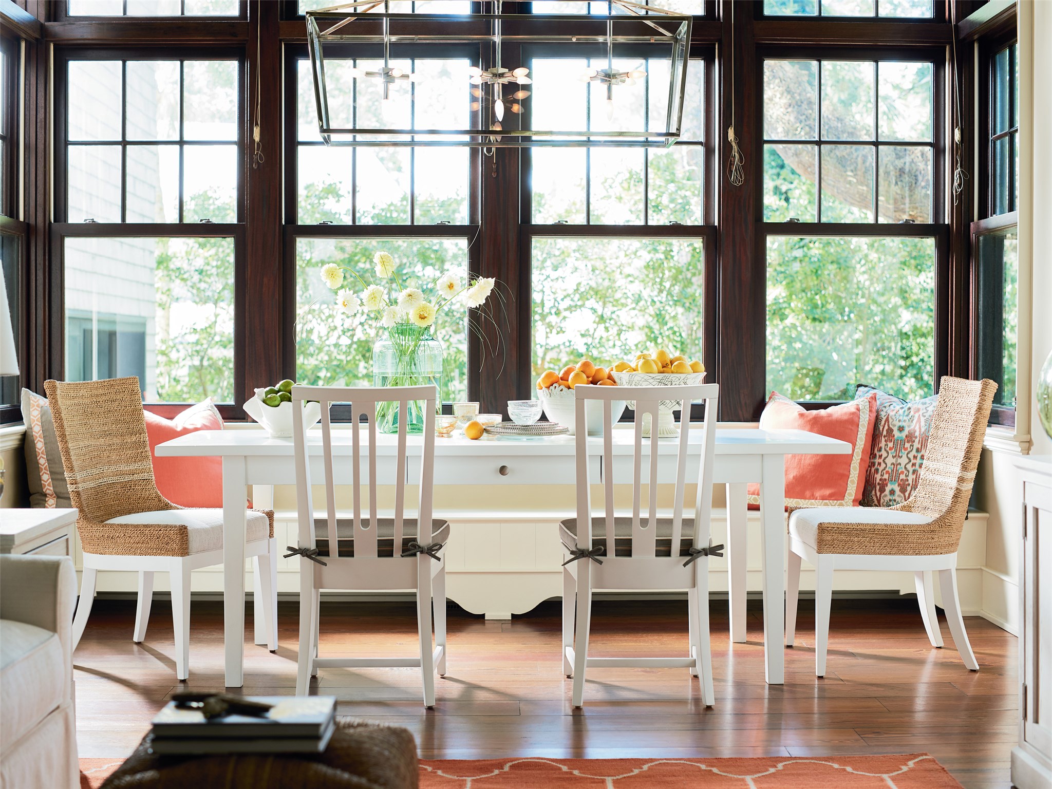 Escape-Coastal Living Home Collection Siesta Key Dining ChairA gorgeous fusion of texture and tone, the Siesta Key Dining Chair is crafted with a woven abaca back and upholstered seat, and finished with chicly tapered legs in a white finish.Escape-Coastal Living Home CollectionDining SeatingSide ChairsDining Room833636