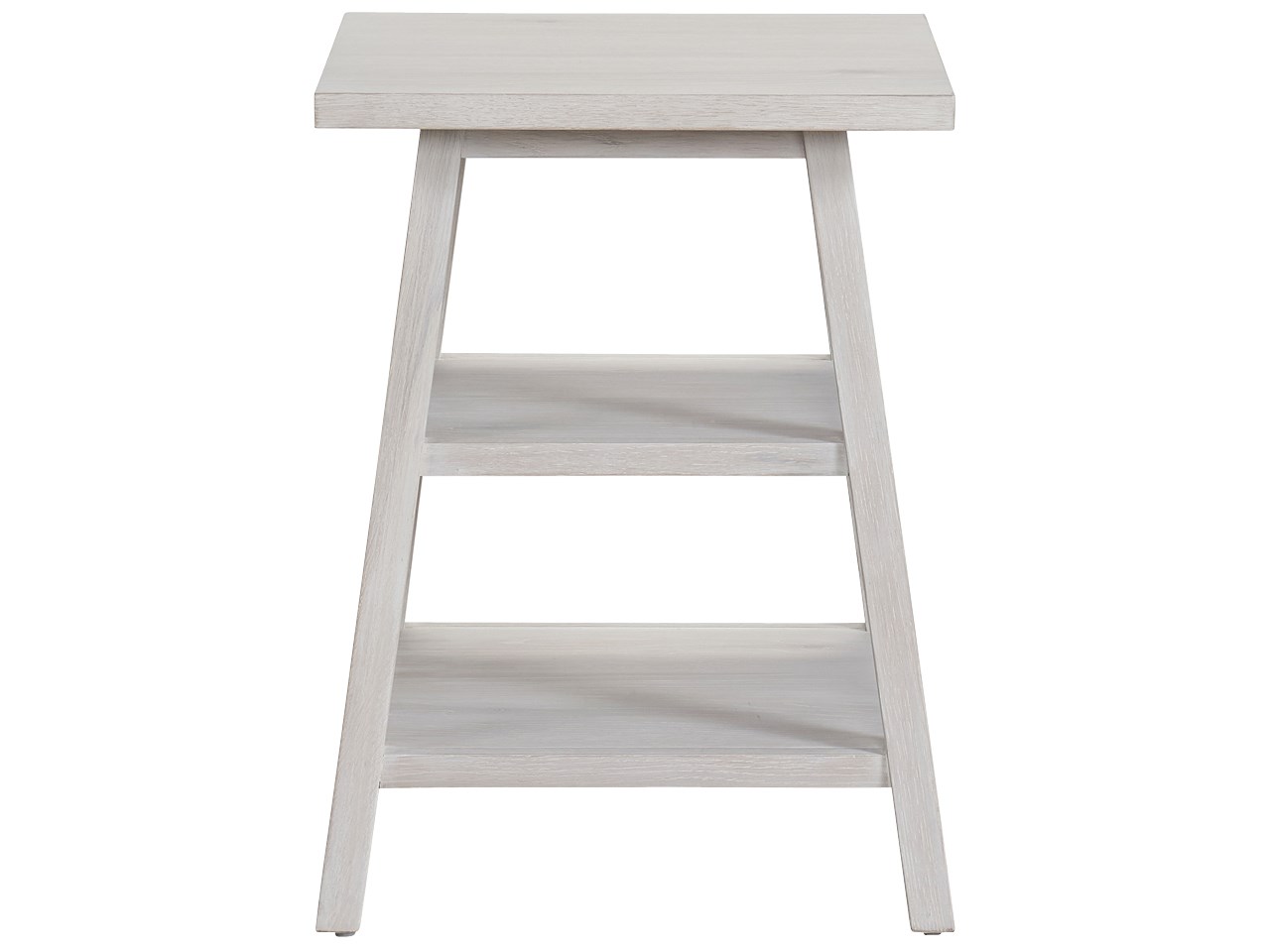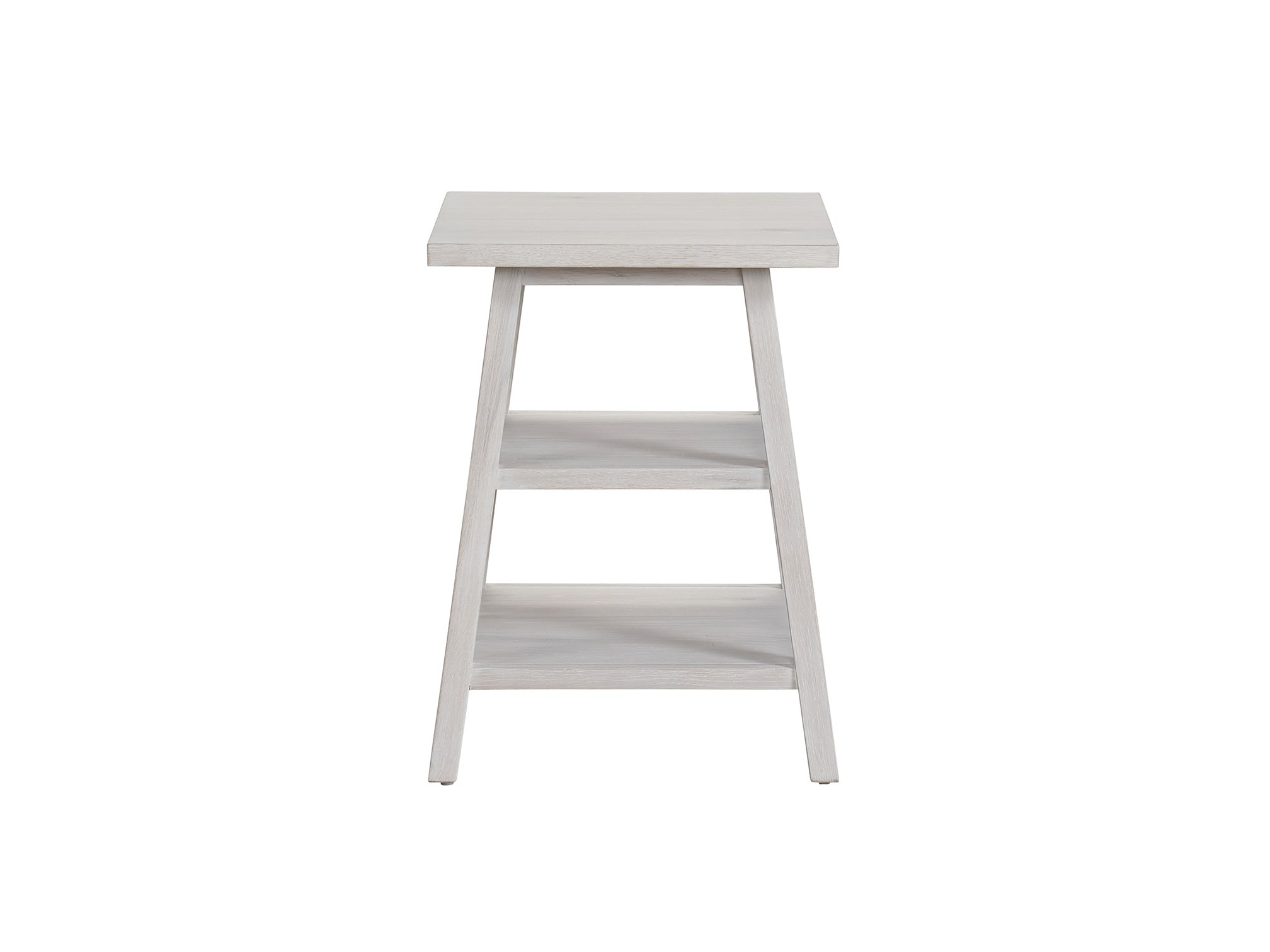 Modern Farmhouse Square End TableAn ideal complement to a favorite chair or sofa, the Square End Table features a multi-shelf design coupled with angled legs and a cool white finish. Modern FarmhouseAccent TablesEnd TablesLiving RoomU011802