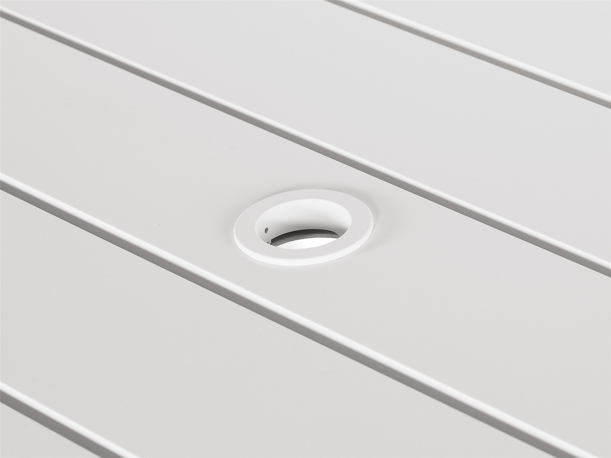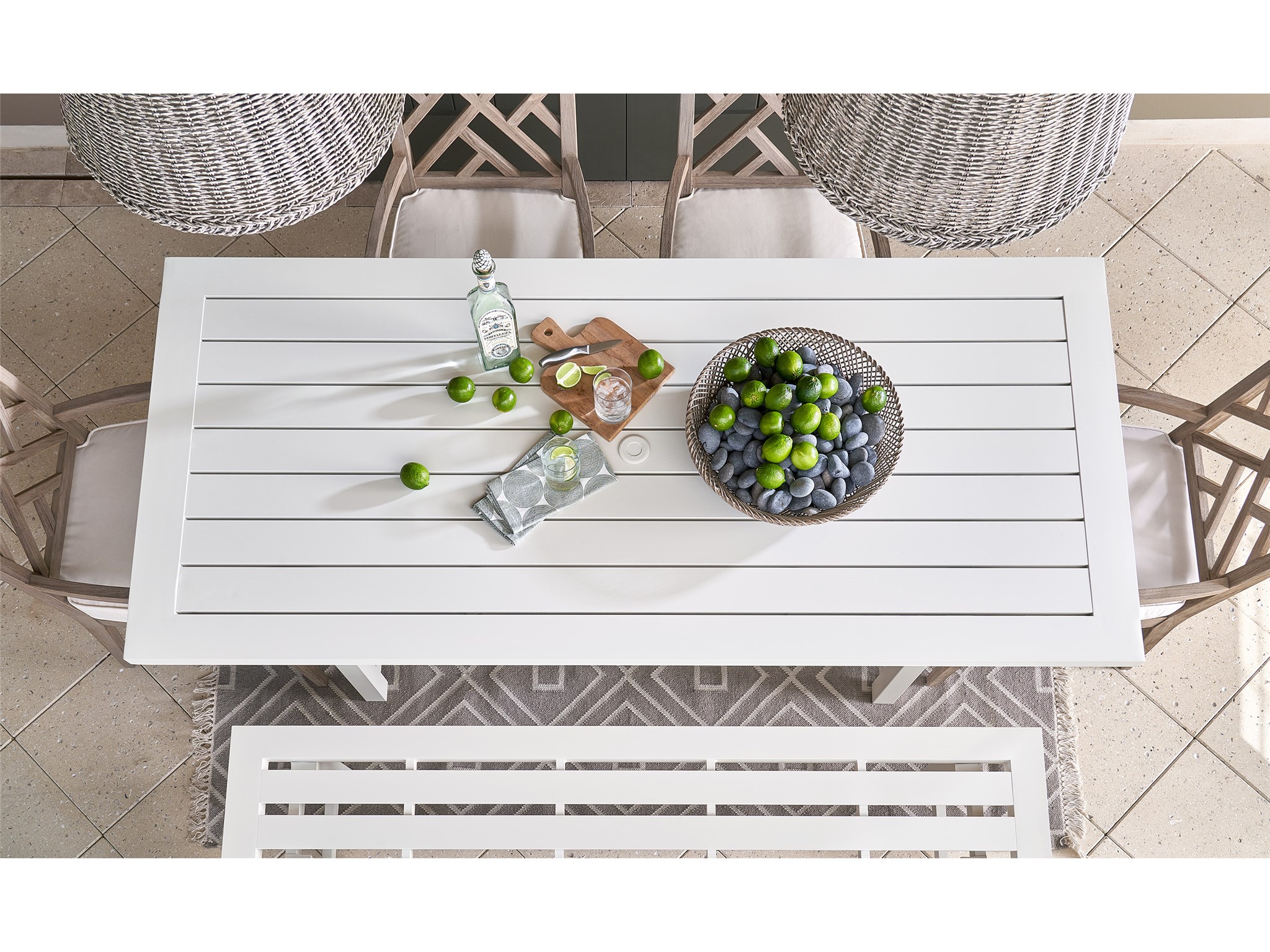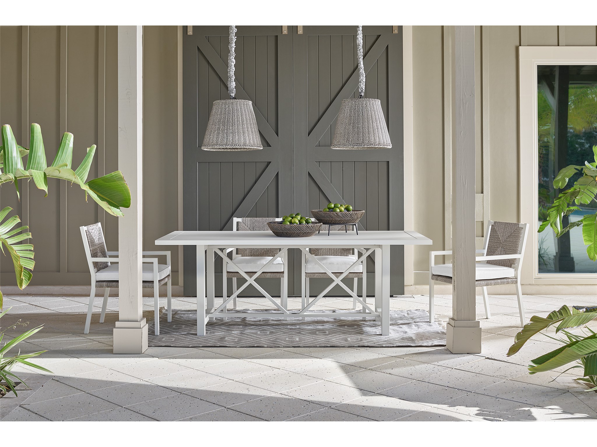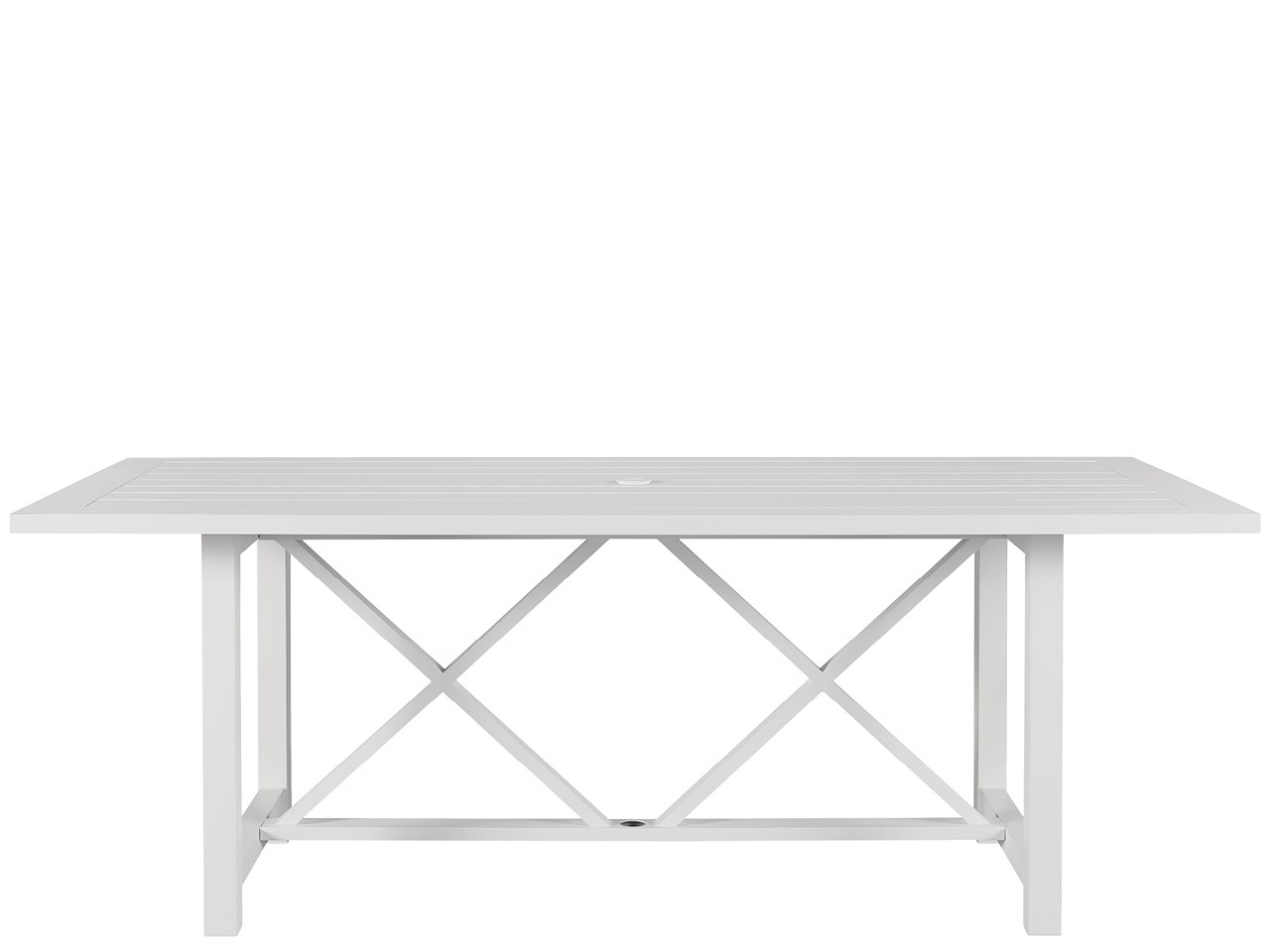 Coastal Living Outdoor Tybee Rectangle Dining Table Enrich outdoor spaces with the Tybee Dining Table, a bright white aluminum dining table featuring a series of angular accents, plus a convenient umbrella hole for added shade when needed.Coastal Living OutdoorOutdoorRectangular TablesOutdoorU012752