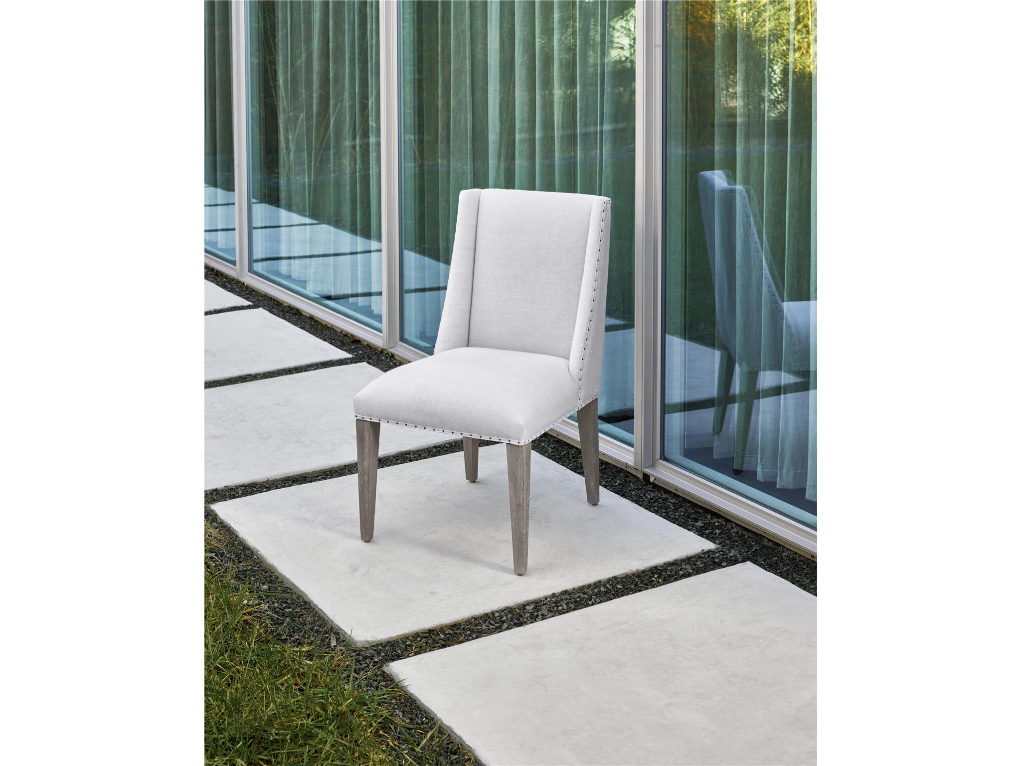 Modern Tyndall Dining ChairOffered in a selection of three gorgeously neutral hues, the Tyndall Dining Chair exudes a clean and effortless charm with its subtly tapered legs and delicate nail head trim.ModernDining SeatingSide ChairsDining Room645736-RTA